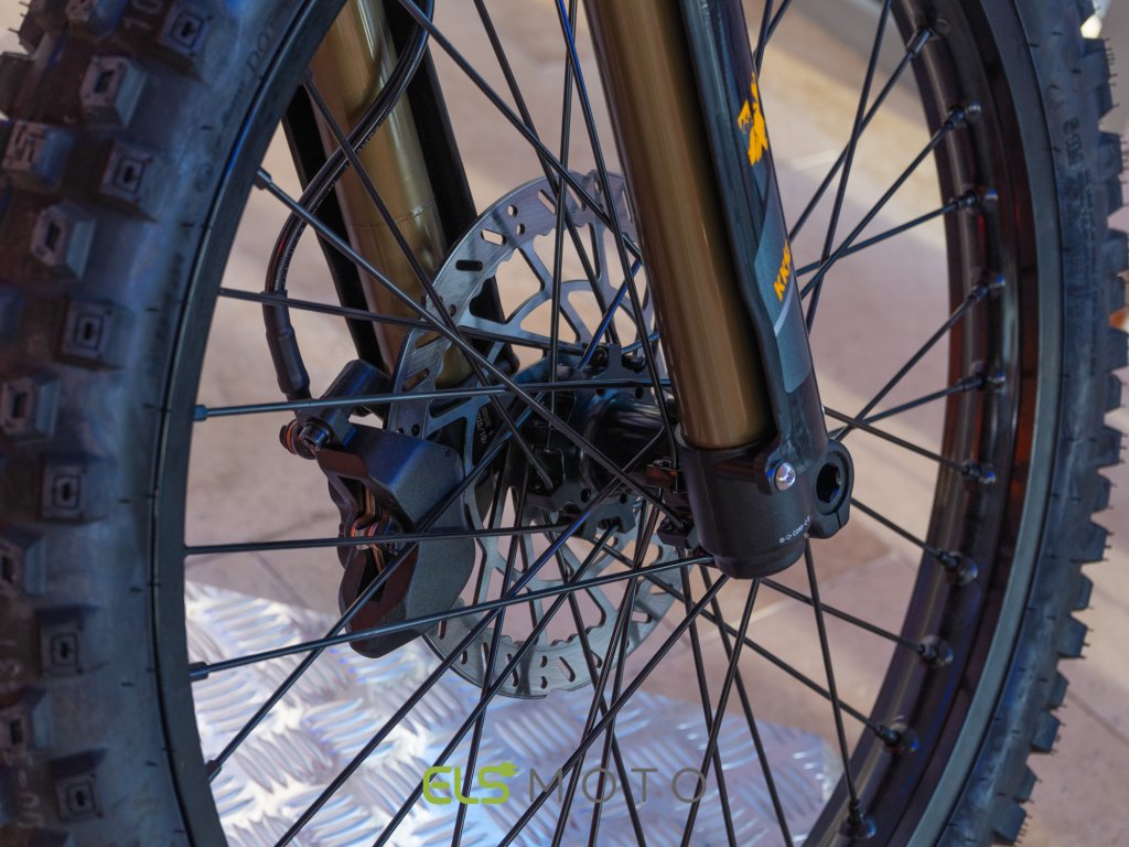 Zawieszenie tworzy widelec USD KKE 37 mm (skok ok. 200 mm) oraz z tyłu w pełni regulowany amortyzator (kompresja/odbicie/napięcie wstępne, skok ok. 210 mm). Za skuteczne hamowanie odpowiadają tarcze 220 mm z przodu i z tyłu. Standardem są koła 19"/18"; geometria została zestrojona pod kątem pewnego prowadzenia zarówno przy większych prędkościach, jak i w technicznych sekcjach.